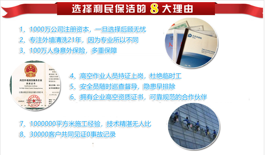 ![]() 利民,高空清潔行業(yè)的卓越領跑者。我們的外墻清洗業(yè)務包括:外墻清潔、外墻防水補漏、外墻涂料粉刷、LED樓體亮化工程高空安裝、外墻防水工程高空施工等系列高空作業(yè)項目,是物業(yè)公司、景觀工程公司、廣告公司、建筑、安裝公司、幕墻公司、各企事業(yè)單位等最佳高空作業(yè)服務專業(yè)供應商.專業(yè)安全高效,承包高空外墻清洗,.專業(yè)的施工團隊,所有人員均持證上崗,高空人員均購買100萬保險,21年1000000平方的外墻清洗經驗,優(yōu)質的服務..[詳細] 經典案例更多 >